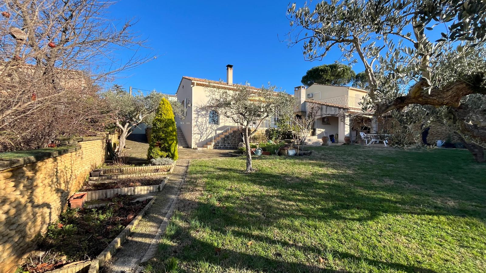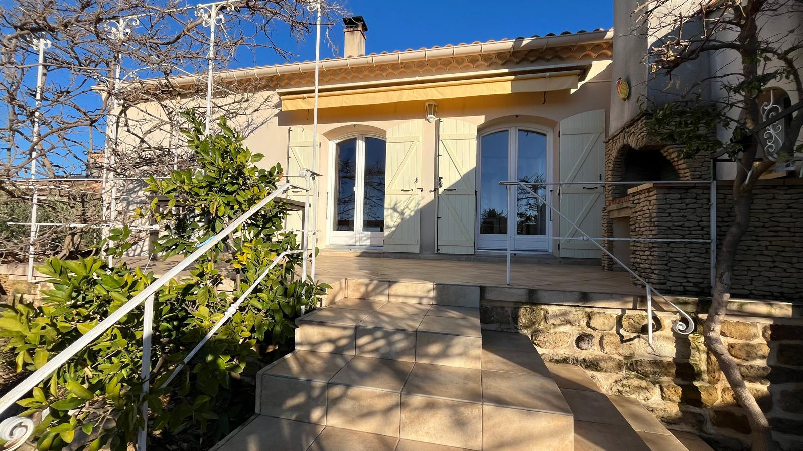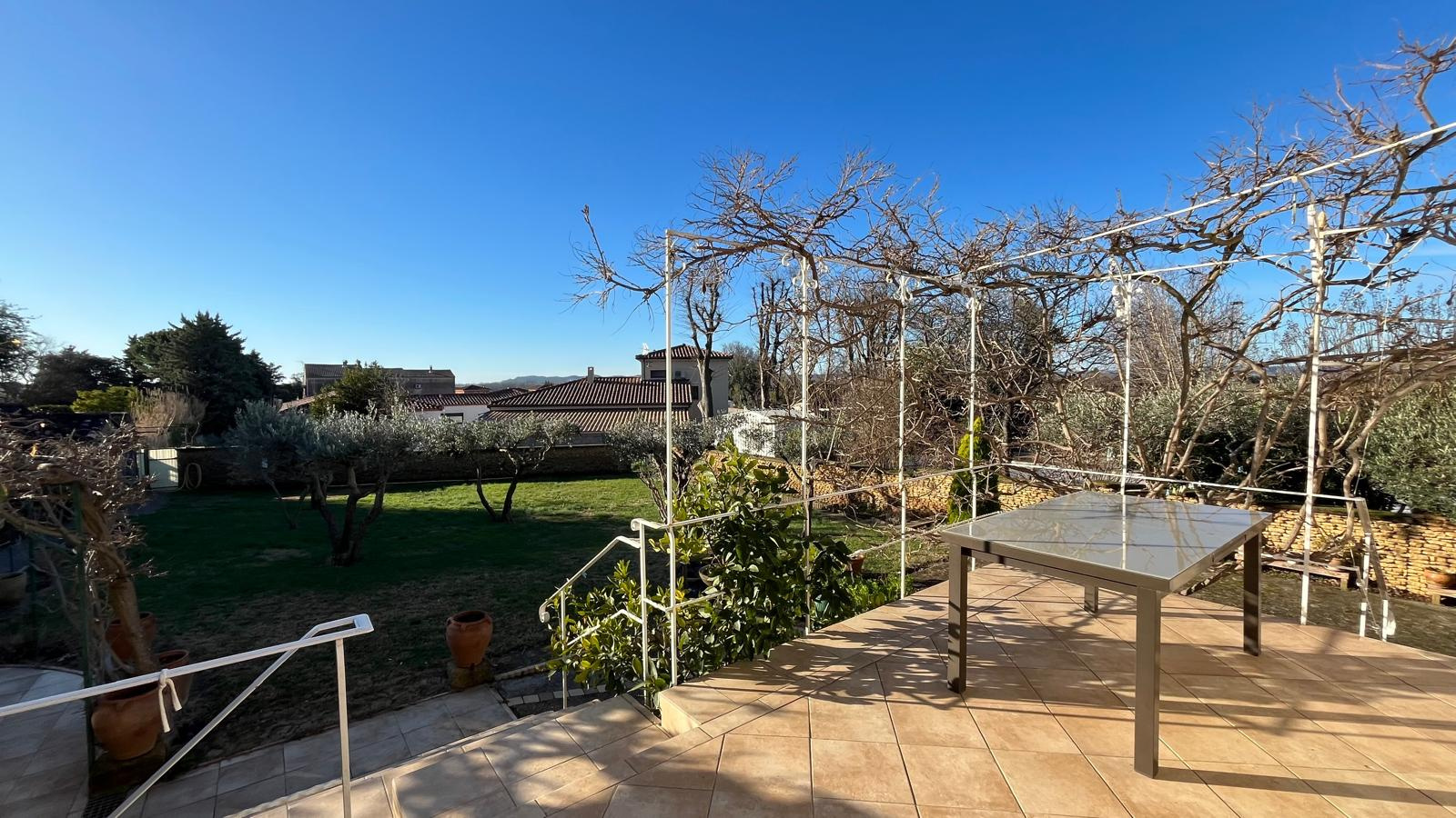Elle dispose également de 2 terrasses au Sud : une couverte au niveau jardin équipée d’un BBQ , et l’autre accessible depuis la cuisine.