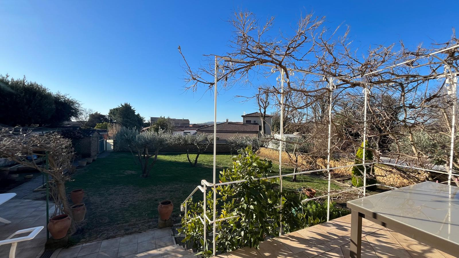 Le jardin est clôturé avec de jolis murets en pierre et il est agrémenté d’un ancien bassin d’ornement végétalisé. Il se compose d’essences locales ; oliviers, plaqueminier, citronnier et autres arbustes.