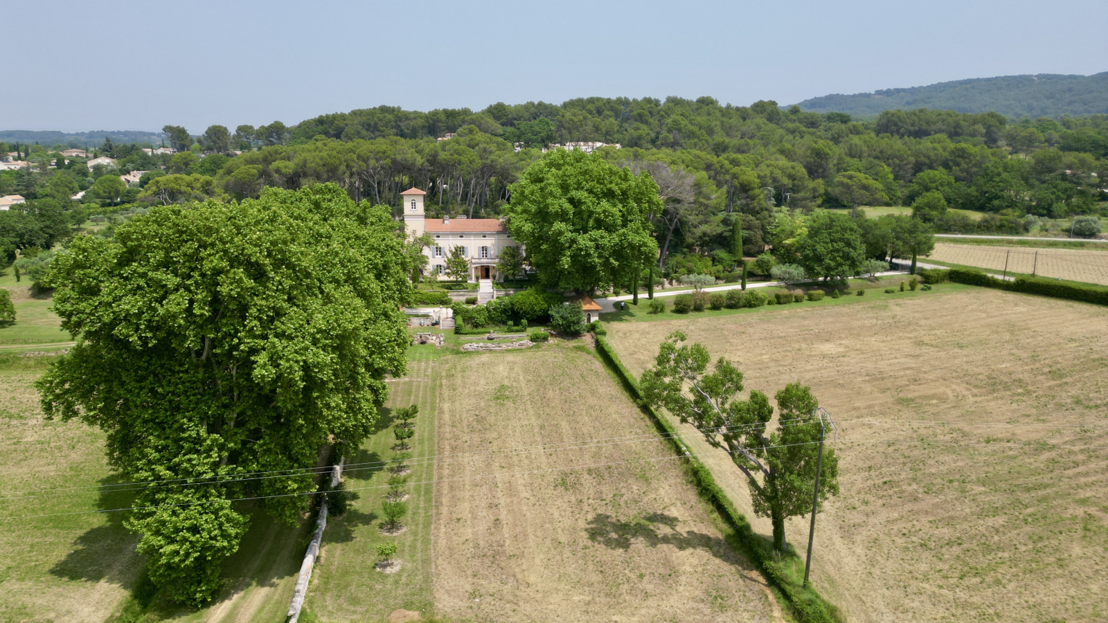 Avec une très belle perspective la bastide est implantée au cœur de son domaine et domine ses terres attenantes d’environ 20 ha composées de bois, de lande et d’oliviers.