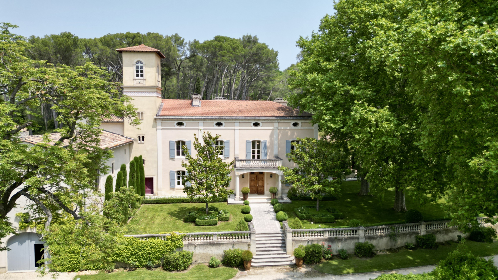 Dans un environnement préservé et unique, le parc est doté d'une chapelle privée. Il est composé d’essences locales conférant à la propriété tout le charme provençal. Aménagé en restanques au Nord, il conduit à la pinède où règne un calme absolu.